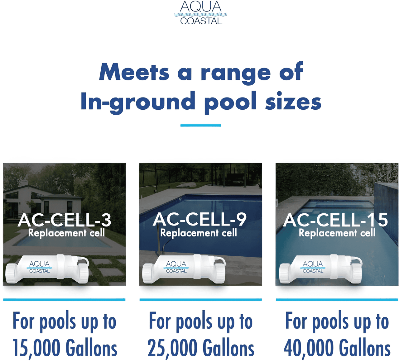 Comes with instructions on how to configure the replacement cell to your system. It is an easy drop-in replacement! The Aqua Coastal replacement cell comes in 3 different sizes to fit your pools exact needs: pools up to 15,000 gallons, 25,000 gallons and 40,000 gallons.